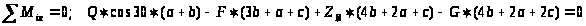 4) ∑M>KX>=Z>B>·AB-G·AB/2-Q·cos45°·AB=0;
