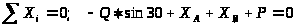 1) ∑F>KX>=X>A>+X>B>-R>C>∙cos30°+Q·sin45°=0;