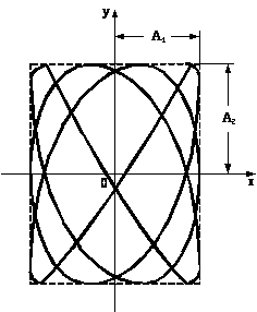 При збудженні коливань матеріальна точка С буде рухатись по деякій криволінійній траєкторії, форма якої залежить від різниці фаз обох коливань.