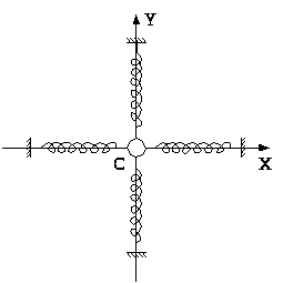 Нехай матеріальна точка С одночасно бере участь у двох гармонічних коливаннях з однаковою циклічною частотою у взаємо перпендикулярних напрямках (рис. 4).