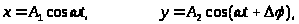 Рівняння коливань точки в напрямках осі x і осі y матимуть вигляд