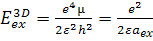 де е — заряд електрона, h — постійна Планка, індекс 3D указує на можливість для екситону рухатися у всіх трьох напрямках (на його тривимірність). Так само як і для атома водню, енергетичний спектр екситону має вигляд