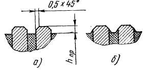 Ізоляцію між пластинами у міру зносу і проточок коллектора випилюють (продорожувають) на глибину h >np >(Рис. 10, а), знімаючи на краях пластин фаски. Цю операцію виконують при поточному ремонті спеціальною пилою. Глибина продорожуванія у малих машин складає від 0,5-0,8 мм, у середніх - 1-1,5 мм, у великих - до 2 мм. Видаляти ізоляцію на велику глибину недопустимо, оскільки в глибоких канавках скупчується щітковий пил, який може привести до замикання колекторних пластин.