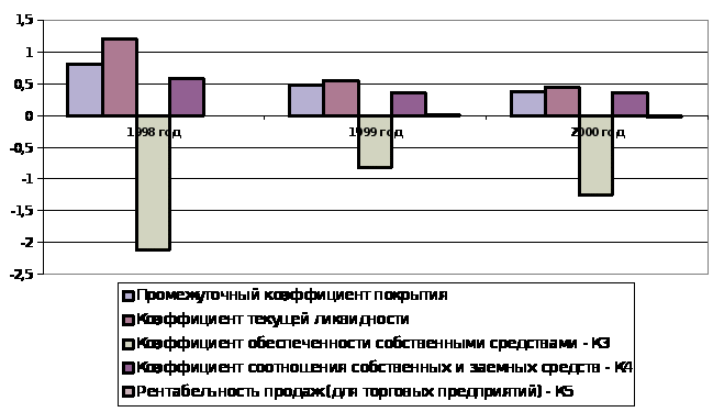 опасность потери ликвидности. Ни один из рассчитанных коэффициентов ликвидности не соответствует желательному уровню. Эта чрезвычайно опасная ситуация может привести к невозможности предприятия отвечать по своим долгам ни за счет денежных средств, ни за счет остальных ликвидных активов.