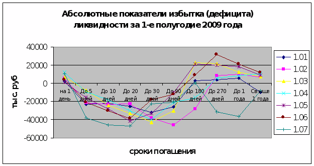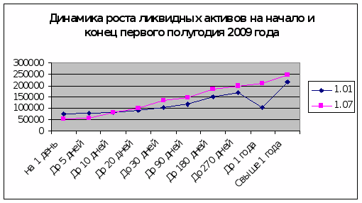 2.4 Анализ ликвидности ООО КБ «Эл Банк» на основе показателей активов и пассивов по срокам востребования и погашения за первое полугодие 2009 года.