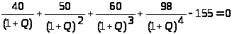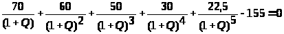 3. (Пример 47). Исходные уравнения для определения внутренней нормы доходности соответственно имеют вид: