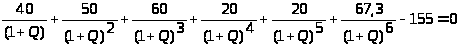 Решая, данное уравнение находим Q>6> = 0,19 или 19 % норма доходности. Максимальное значение внутренней нормы доходности у проекта 5.
