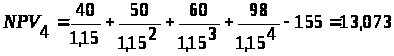 Инвестор 4 предлагает инвестиционный проект на n = 4 года под i = 15% годовых.