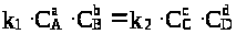 По мере протекания реакции слева направо концентрации веществ А и В будут уменьшаться и скорость прямой реакции будет падать. С другой стороны, по мере накопления продуктов реакции C и D скорость реакции справа налево будет расти. Наступает момент, когда скорости υ> 1> и υ> 2> становятся одинаковыми, концентрации всех веществ остаются неизменными, следовательно,
