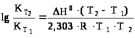 Зависимость константы равновесия от температуры (для температуры Т>2> относительно температуры Т>1>) выражается следующим уравнением Вант-Гоффа: