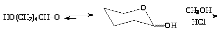 Циклические полуацетали реагируя со спиртами, могут превращаться в полные ацетали: