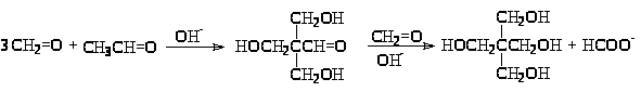 Большое практическое значение имеет реакция между ацетальдегидом и избытком формалина в щелочной среде: