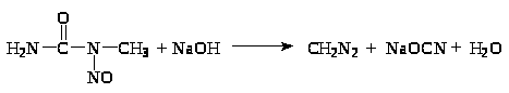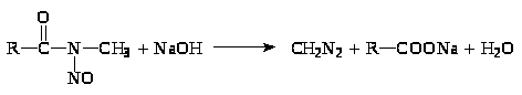 Диазометан можно синтезировать различными способами, наиболее удобным из которых является разложение щелочью N-нитрозо-N -метиламидов: