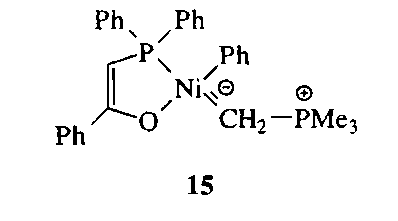 В развитие наших работ Остойя-Старжевский получил катализатор полимеризации этилена при реакции комплекса 1 с СН>2> = РМе>3> [13]. Этому комплексу была приписана структура