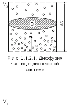 Значения коэффициента диффузии для видов её распределяются так: ионная – D = 10-8 м2/с; молекулярная - D = 10-9; коллоидных частиц - D = 10-10. Отсюда видно, что диффузия коллоидных частиц затруднена по сравнению с двумя другими видами. Так, скорость диффузии частиц карамели (дисперсная фаза – коллоидный раствор) в 100 – 1000 раз меньше скорости диффузии молекул сахара (молекулярный раствор). Соответственно в газах D увеличивается до 10-4, в твердых телах снижается до 10-12 м2/с.