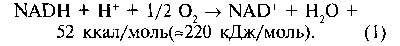 Первый процесс – перенос электронов от восстановлнных коферментов НАДН и ФАДН2 через цепь переноса электронов на кислород – экзергонический.
