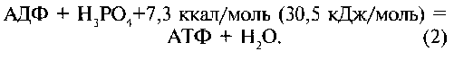 Второй процесс – фосфорилирование АДФ, или синтез АТФ, - эндергонический. Сопряжение реакции окисления восстановленных молекул и фосфорилирования АДФ и образования АТФ называют окислительным фосфорилированием.