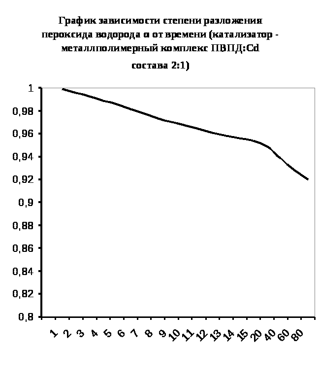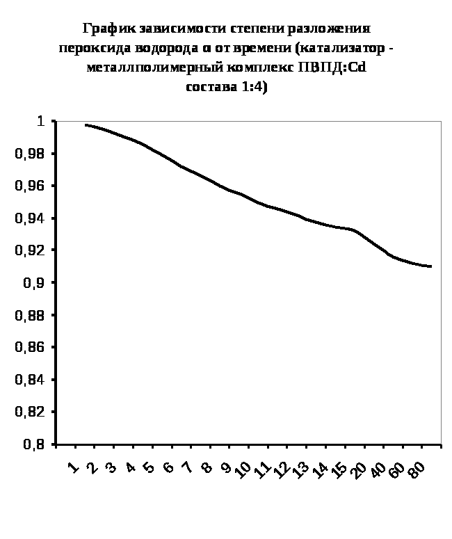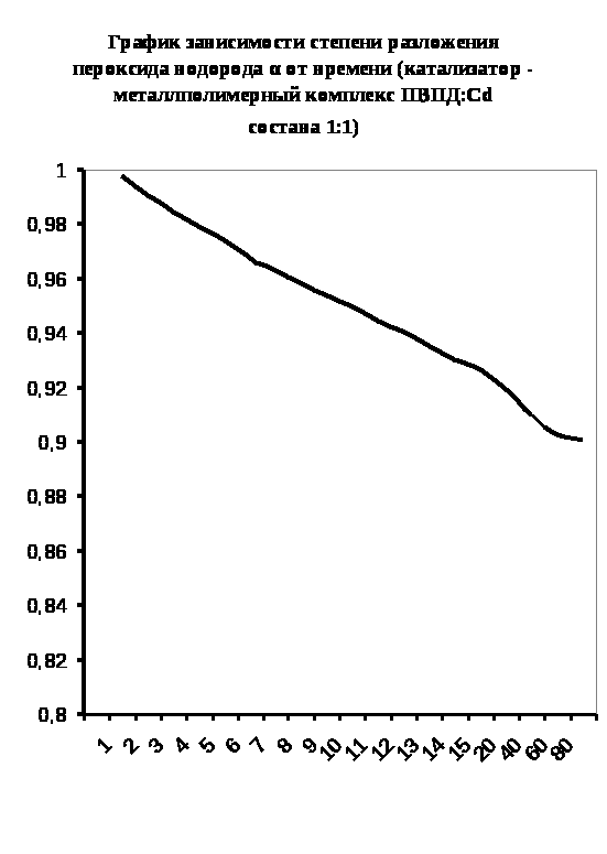 Каталазная активность мталлполимерного комплекса ПВПД:Cd2+ состава (1:4)
