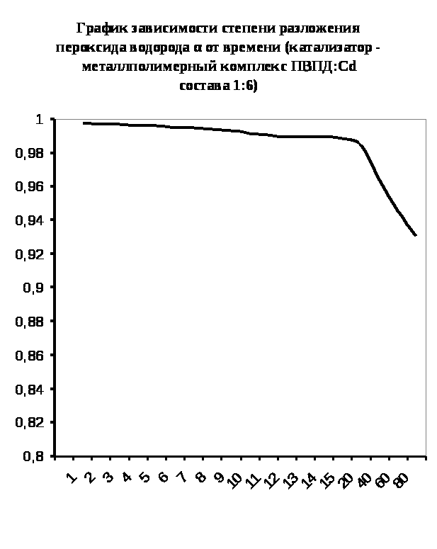Каталазная активность мталлполимерного комплекса ПВПД:Cd2+ состава (1:6)