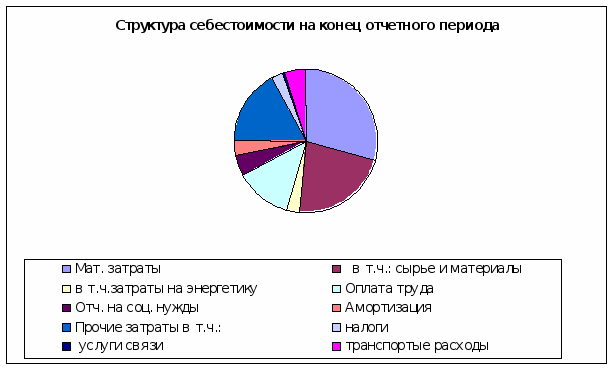 Наибольший вес в себестоимости имеют материальные затраты. Также большой вес имеют затраты на оплату труда и сырье и материалы. Наибольший вклад в прочих расходах имеют налоги и транспортные расходы.