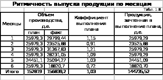 В течении 6 месяцев предприятие выполнило план и считается ритмичным, т.к. коэффициент ритмичности составляет 102,63%.
