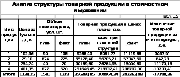 Неравномерность выполнения плана по отдельным видам продукции приводит к изменению её структуры, т. е. соотношение отдельных изделий в общем, объёме их выпуска.