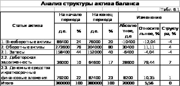 Анализ финансового состояния начинается с общей оценки структуры средств хозяйствующего объекта и источников их формирования, изменения ее на конец года в сравнении с началом по данным баланса. Используются горизонтальный и вертикальный методы экономического анализа. Все данные представляются в форме табл. 6.1., 6.2..