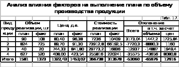 1.4. Анализ влияния факторов на выполнение плана по объему продукции.