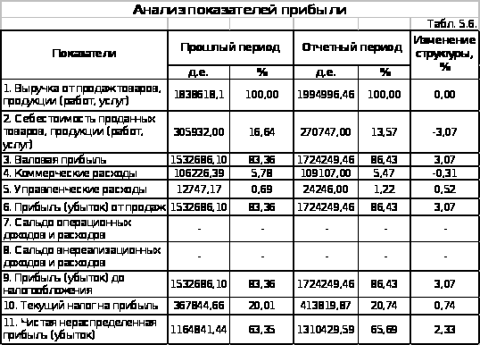 Особое внимание при анализе уделяется изменению структуры и динамики показателей прибыли. На основе расчетов делаются выводы. Все данные представлены в табл. 5.6.