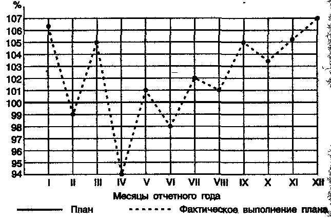 Для определения равномерности развития розничного товарооборота целесообразно также составить графики выполнение плана по месяцам