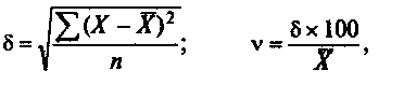 Среднее квадратическое отклонение позволяет изучить и оценить колебание в развитии анализируемого показателя. По коэффициенту вариации (неравномерности) можно проанализировать неравномерность развития исследуемого показателя. Коэффициент равномерности (К>равн>) рассчитывают по следующей формуле: