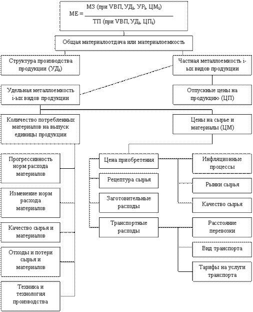 Рисунок 2 - Схема взаимосвязи факторов, определяющих общую материалоемкость