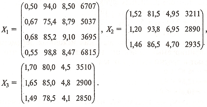 Теоретически число дискриминантных переменных не ограничено, но на практике их выбор должен осуществляться на основании логического анализа исходной информации и одного из критериев, о котором речь пойдет немного ниже. Число объектов наблюдения должно превышать число дискриминантных переменных, как минимум, на два, т. е. р < N. Дискриминантные переменные должны быть линейно независимыми. Еще одним предположением при дискриминантном анализе является нормальность закона распределения многомерной величины, т.е. каждая из дискриминантных переменных внутри каждого из рассматриваемых классов должна быть подчинена нормальному закону распределения. В случае, когда реальная картина в выборочных совокупностях отличается от выдвинутых предпосылок, следует решать вопрос о целесообразности использования процедур дискриминантного анализа для классификации новых наблюдений, так как в этом случае затрудняются расчеты каждого критерия классификации.