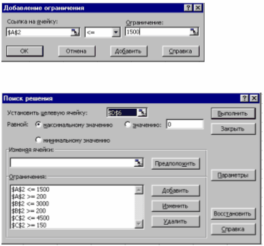 Викликаємо “Поиск решений” та заносимо усі обмеження:
