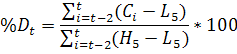 L>5> и H>5> – соответственно минимальная и максимальная цены за 5 предшествующих дней, включая текущий.