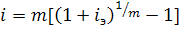 3.7 Определить, какой должна быть номинальная ставка при начислении процентов m раз в году, чтобы обеспечить эффективную ставку i% годовых.