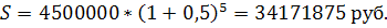 3.4 В кредитном договоре на сумму S руб. и сроком на T>лет> лет, зафиксирована ставка сложных процентов, равная i% годовых . Определить наращенную сумму.