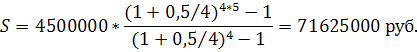 3.10 В течение Т>лет> на расчетный счет в конце каждого года поступает по S руб., на которые m раз в году начисляются проценты по сложной годовой ставке i%. Определить сумму на расчетном счете к концу указанного срока.