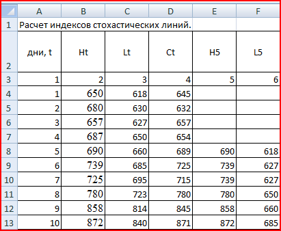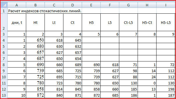 Составим таблицу расчета индексов стохастических линий и заполним ее (рис. 18).