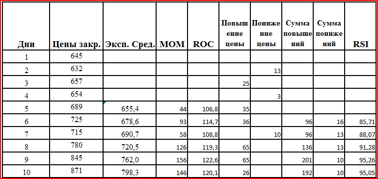 Момент (МОМ) рассчитывается как разница конечной цены текущего дня и цены n дней тому назад: