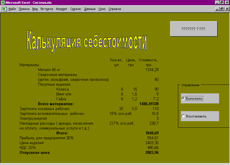 Программа позволяет ввести данные для прогноза за последнии 4 года. А калькуляція себестоимости – посмотреть, какой процент прибыли будет получать предприятие от какой-либо сделки. Программа позволяет корректировать данные для таблиц, формат первичного документа.