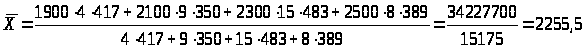 Решение: Размах вариации последующего за первым открытым снизу интервалом и предыдущего последнему интервалу, открытому сверху - равно 200. Поэтому нижняя граница первого интервала равна 1800 кг, а верхняя граница последнего – 2600 кг.