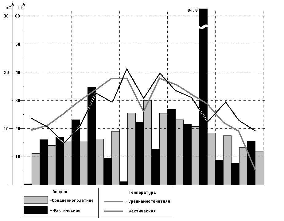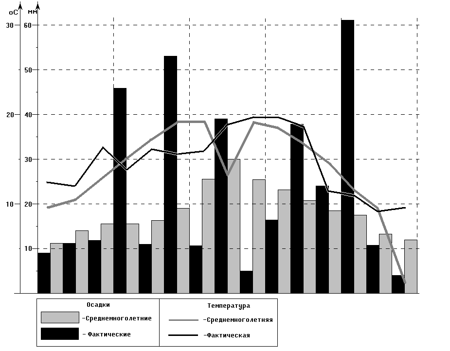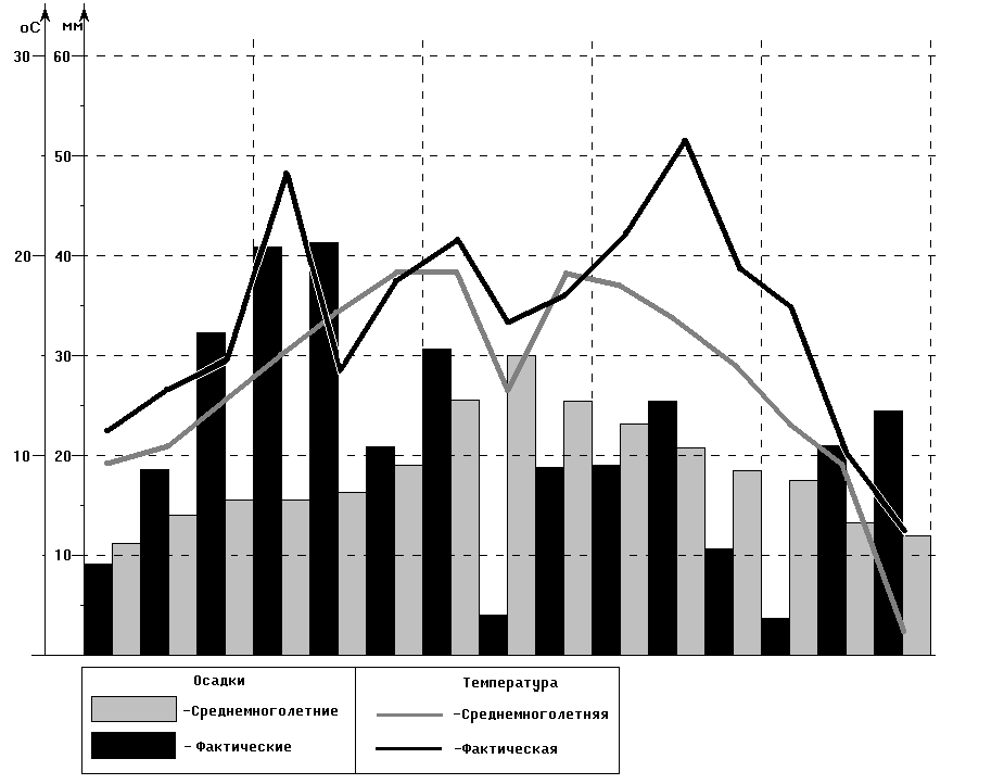 Осадков за период активной вегетации растений выпадает в пределах 240-250 мм. Влагозапасы в метровом слое почвы к моменту посева зерновых культур бывают, как правило, достаточные – 140-170 мм. Гидротермический коэффициент (по Селянинову) в весенне-летний период составляет 1,2-1,4.
