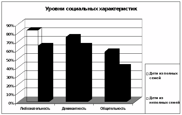 Дети из полных семей проявляют более высокую степень общительности, любознательности, а также их показатели доминирования выше, чем у детей из неполных семей. В полных семьях дети обладают большим энтузиазмом, потребностью в общении.