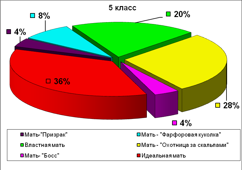 В 5, 7, 9,11 классах было проведено тестирование по выявлению характера матери.