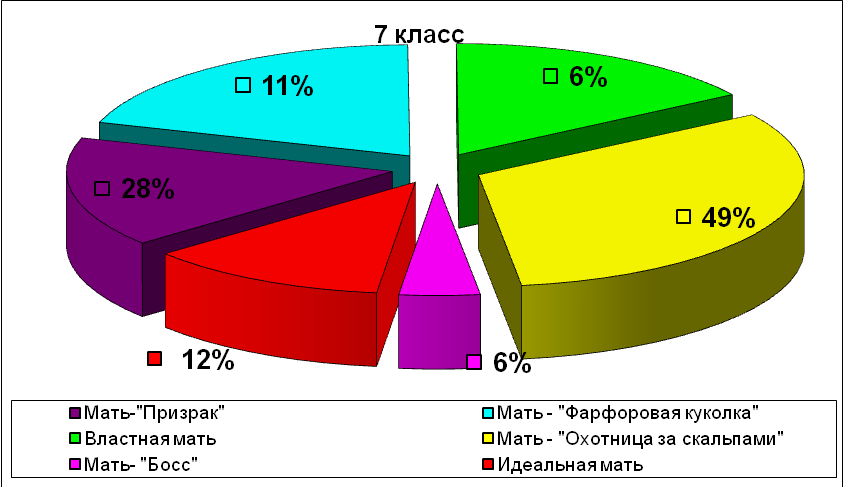 - в 7-ых классах преобладают матери, которые хотят, чтобы их дети были самыми лучшими и совершенными. В этом нет ничего и необычного. Каждая мать хочет, чтоб ее ребенок был самым, самым. Но на этой почве может развиться фанатизм, и тогда ребенок станет воплощением материнских идей и желаний.