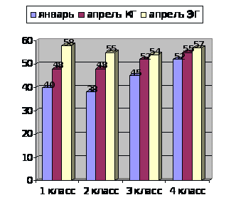 В ходе исследования было установлено, что дети младшего школьного возраста контрольной группы уступают своим сверстникам из экспериментальной группы в уровне развития эмоционально-личностной сферы. Анализируя данные, которые мы получили в результате обследования детей в январе и в апреле, можно проследить положительную динамику полученных данных. Сравнив показатели детей контрольных и экспериментальных классов мы можем сделать вывод, что применяемая нами методика, создает более благоприятную обстановку для развития творческой индивидуальности детей младшего школьного возраста. Причем следует обратить внимание на то, что таких результатов мы добились всего за 4 месяца.