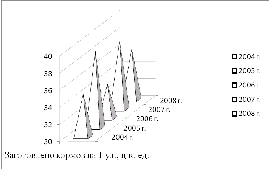 - валовой надой в сопоставимых ценах в динамике с 2004 г. по 2008 г. снижается на 32,8 %;