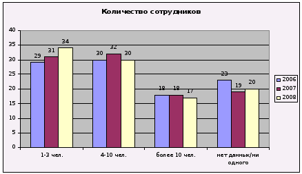 При этом в последние несколько лет наблюдается тенденция к снижению доли занятых в некоммерческом секторе (с 0,8% в 1999г. и начале 2000-х до 0,6% последние три года). С определенной долей уверенности можно предположить, что уменьшение доли занятых в НКО-секторе за последние 7-8 лет (2000-2007 гг.) связано с укреплением двух других секторов – государственного и бизнес-сектора, которые в эти годы активно
