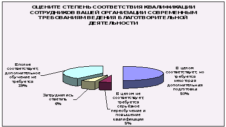 довольно остро, но все же не входит в число самых острых проблем их организации (обычно лидируют финансовые и материальные проблемы). К примеру, в рамках опроса руководителей благотворительных некоммерческих организаций Москвы, осуществленного Исследовательской группой ЦИРКОН летом 2008 г. в интересах СБОР, 24% респондентов (т.е. каждый четвертый) указали нехватку квалифицированных специалистов в качестве одной из важных проблем, препятствующих эффективному развитию благотворительного сектора столицы (нехватку финансовых средств отметили 50% участников опроса).
